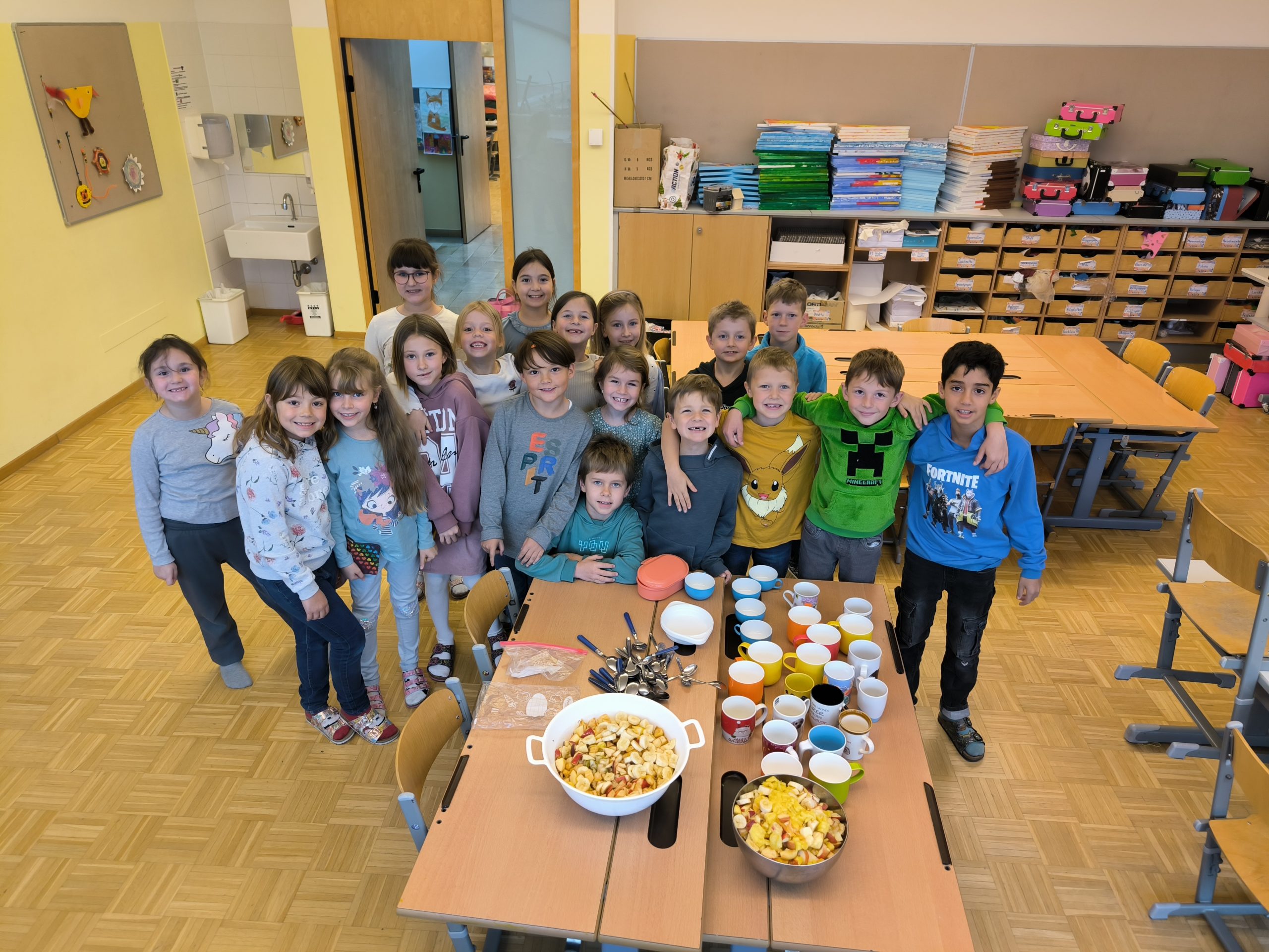 Im Rahmen des Unterrichtsthemas „Obst und Gemüse“ brachten am Montag, dem 17.11., alle Kinder der zweiten Klassen des Standortes Fohnsdorf ein Stück Obst mit. Gemeinsam wurde daraus ein köstlicher Obstsalat zubereitet. Die Kinder schnitten das Obst selbst in kleine Stücke und mischten anschließend alles sorgfältig zusammen. Zum Schluss durfte jedes Kind ein kleines Schüsserl des…