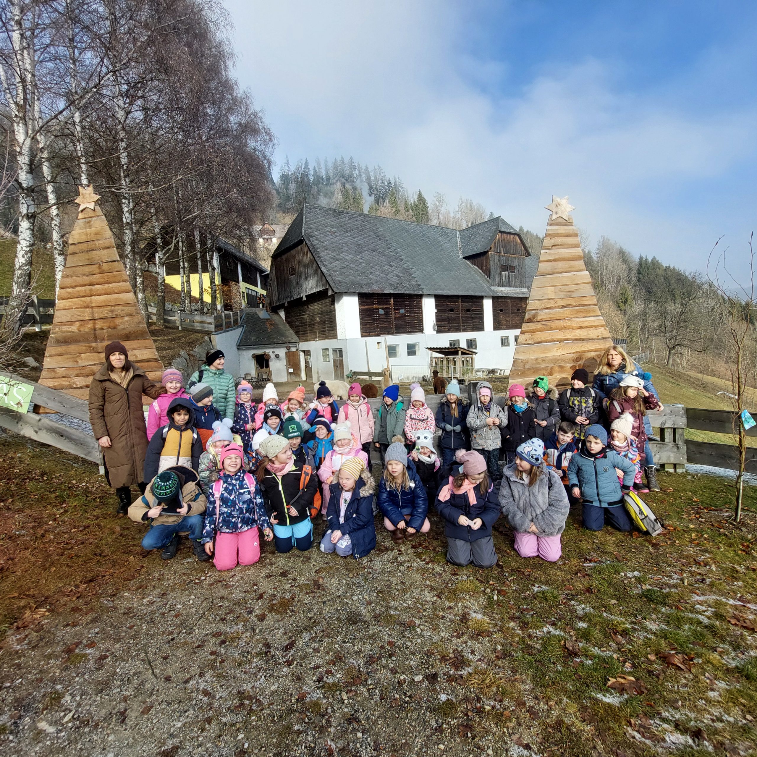Kurz vor Weihnachten haben die Klassen 1.a und 1.b einen unvergesslichen Ausflug auf den Wieserhof unternommen. Gemeinsam erlebten die Kinder einen Tag voller Spaß, Kreativität und Gemeinschaft. Ein Highlight war das Wandern mit den Alpakas, bei dem die Schülerinnen und Schüler die sanften Tiere hautnah kennenlernen durften. Mit viel Freude und Ruhe führten die Kinder
