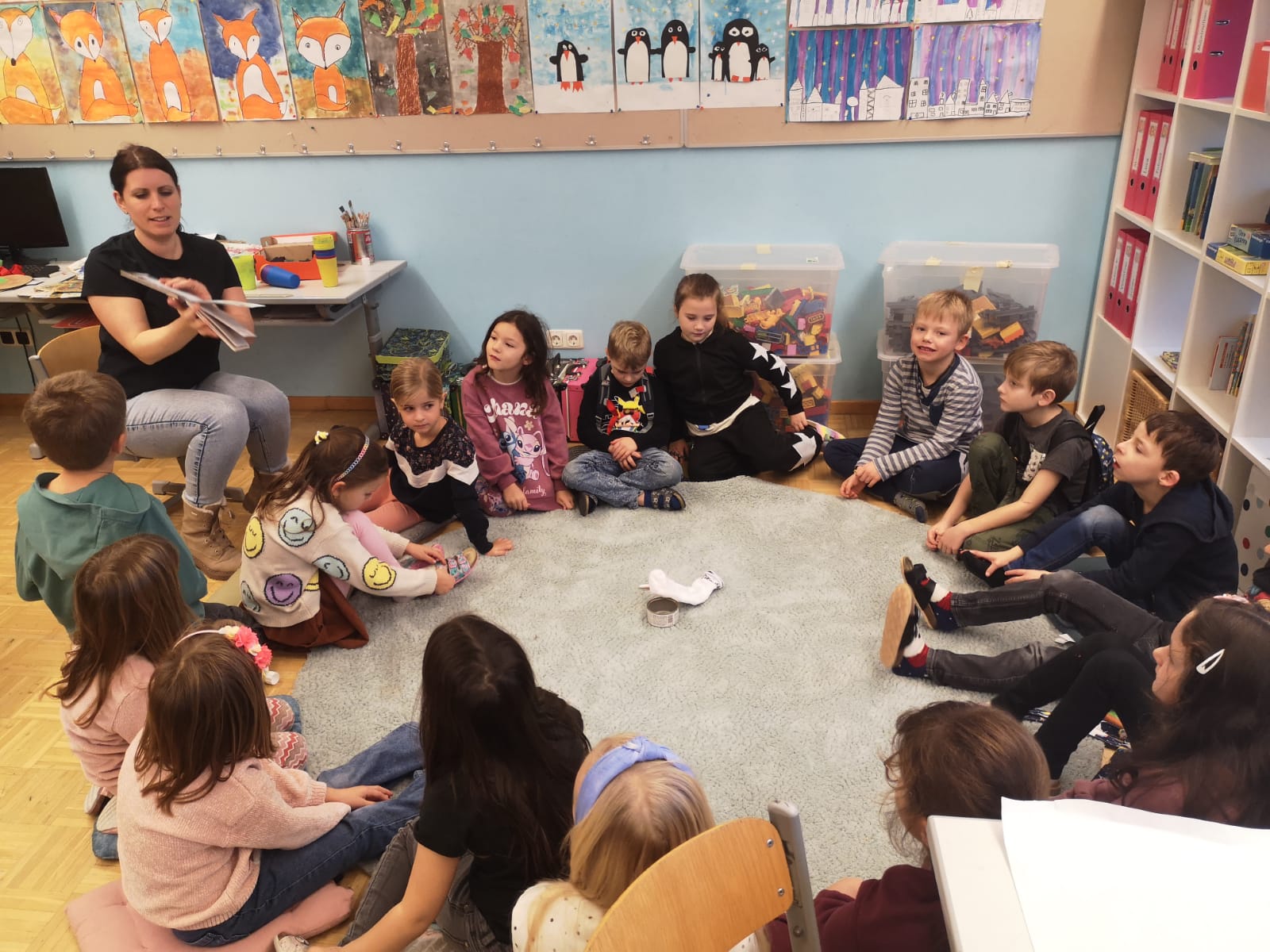 An einem Vormittag in der Adventszeit nahmen alle Kinder der ersten und zweiten Klassen an einem stimmungsvollen weihnachtlichen Stationenbetrieb teil. In jeder Stunde wartete ein neues, abwechslungsreiches Angebot auf die Schülerinnen und Schüler. Bei der Bilderbuchvorstellung „Herr Eichhorn und der erste Schnee“ ließen sich die Kinder von einer winterlichen Geschichte verzaubern und gestalteten im Anschluss