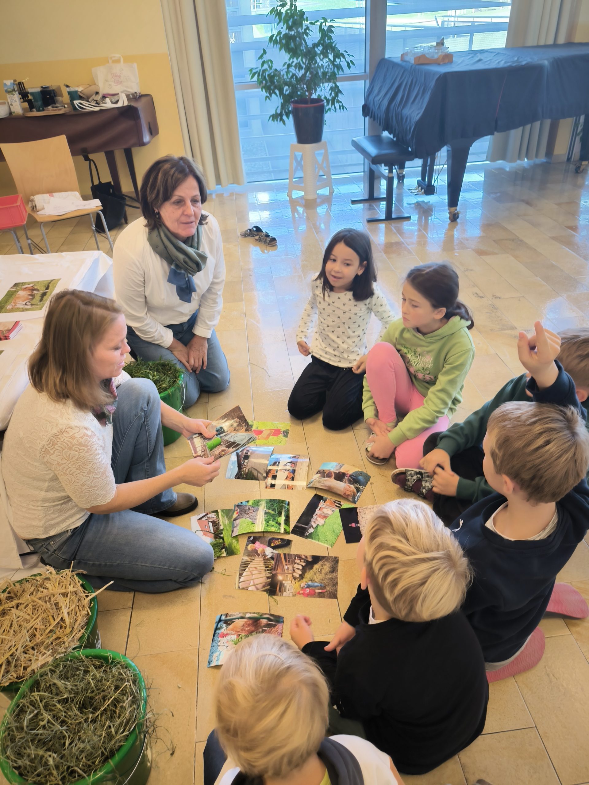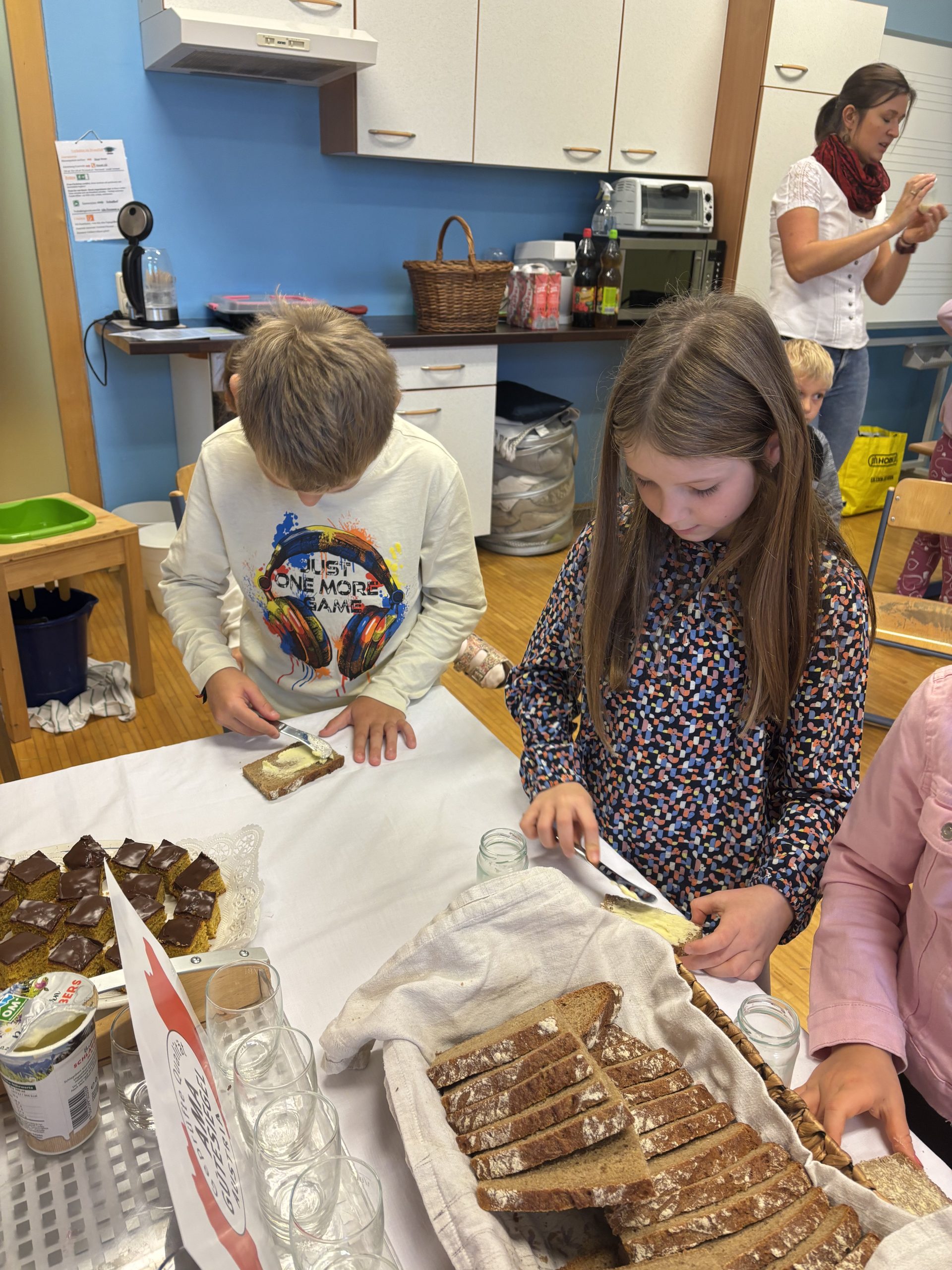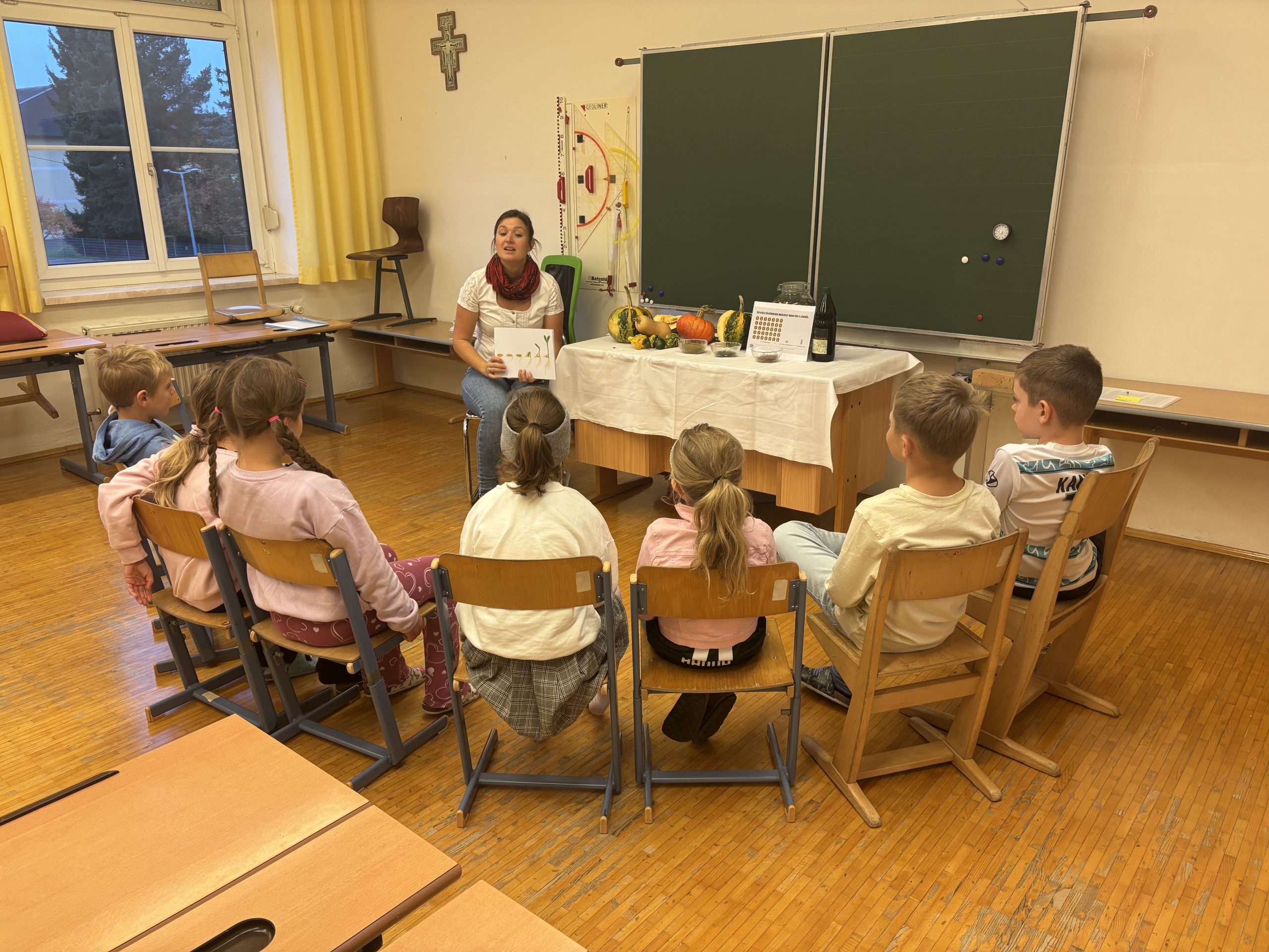 Unsere zweiten Klassen erhielten anlässlich des Welternährungstags Besuch von Fohnsdorfer Bäuerinnen. Die Kinder lernten viel über das AMA-Gütesiegel, die Bedeutung regionaler Lebensmittel und die vielfältigen Aufgaben auf einem Bauernhof. Die Bäuerinnen stellten ihre Bauernhöfe vor und erzählten, welche Lebensmittel sie dort selbst herstellen. So erfuhren die Kinder Spannendes über den Weg der Milch und den Anbau von Kürbissen. Ein weiteres Highlight war, dass sich die Kinder selbst im Handmelken versuchen durften. Zum Abschluss durfte jedes Kind in einem Glas Schlagobers schütteln, bis Butter entstand. Danach gab es leckeres Butterbrot, Milch und Kuchen. Zum Abschied bekam jedes Kind ein Sackerl mit schokoladenüberzogenen Kürbiskernen als süße Überraschung. Danke für den interessanten Vormittag!