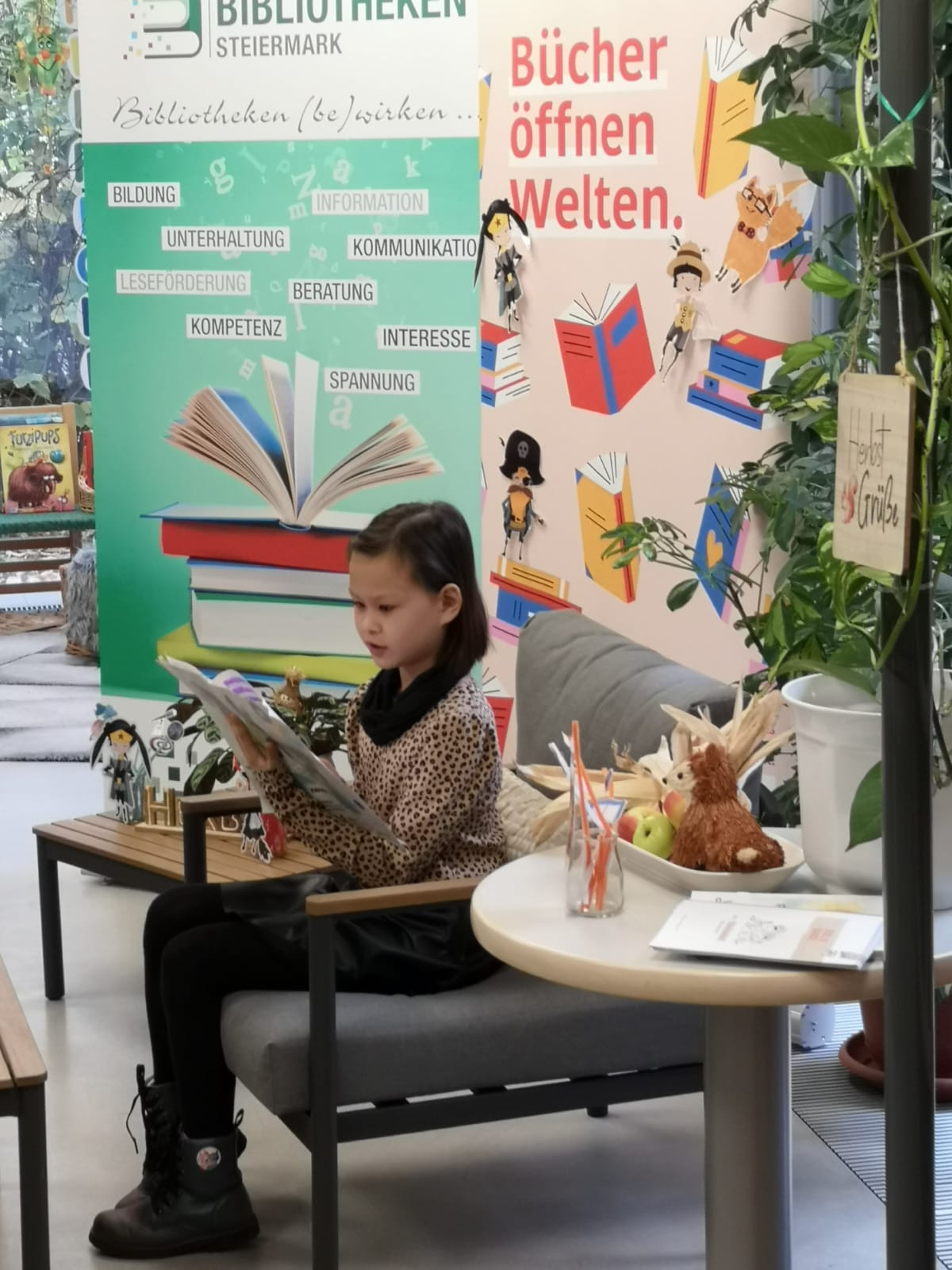 Am 8. Steirischen Vorlesetag zeigten unter anderem auch zwei junge Schriftstellerinnen von morgen aus dem PSC Volksschulen Fohnsdorf ihr Talent. Mit großer Begeisterung präsentierten sie ihre selbst verfassten Texte, die voller Kreativität, Spannung und Humor waren und begeisterten damit ihr Publikum! Herzliche Gratulation an die beiden Nachwuchsautorinnen und ein herzliches Dankeschön an das Team der Gemeindebücherei, das diese tolle Erfahrung für die Kinder möglich machte!